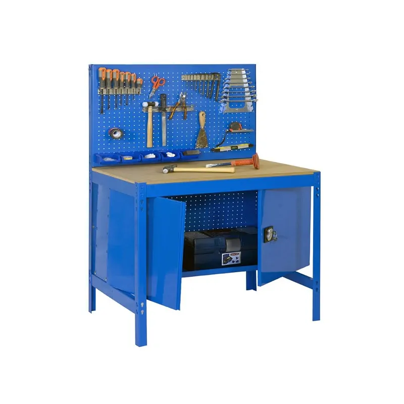 Etabli de travail 2 tablettes avec 1 panneau fond perforé pour rangement