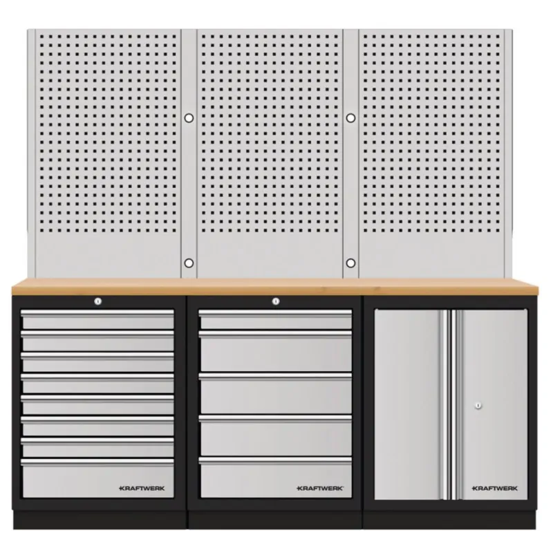 Mobilier d’atelier 3 éléments + panneaux perforés combi-standard MOBILIO – KRAFTWERK 3964K-85S-W