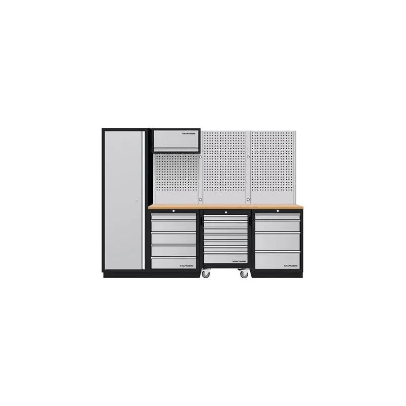 Mobilier d’atelier 4 éléments + panneaux perforés + meuble haut combi-standard MOBILIO – KRAFTWERK 3964K-H5R4-K1W