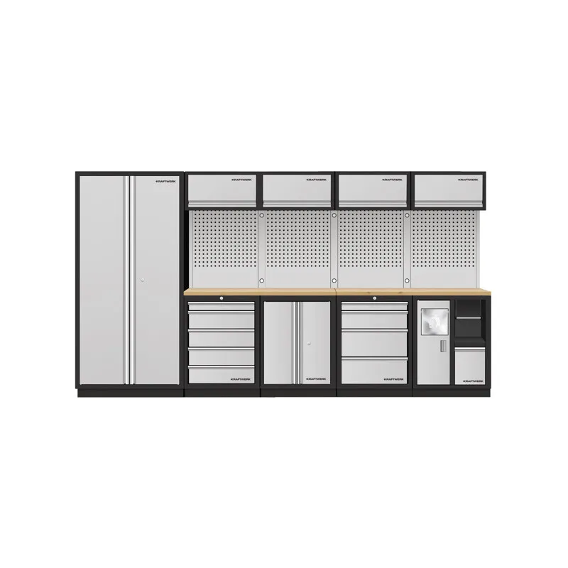 Le mobilier d’atelier 5 éléments MOBILIO Hêtre de KRAFTWERK, référence 3964H, est une solution modulable et polyvalente conçue pour optimiser l’organisation et le rangement dans les ateliers professionnels ou personnels. Avec ses cinq éléments principaux, ce mobilier offre une grande capacité de rangement et une organisation méthodique des outils et équipements. Doté d’un plan de travail en hêtre multiplex de 35 mm d’épaisseur, il allie robustesse et élégance pour répondre aux besoins des professionnels les plus exigeants. Grâce à ses fonctionnalités pratiques et sa construction durable, ce mobilier est idéal pour maintenir un espace de travail propre, ordonné et fonctionnel.