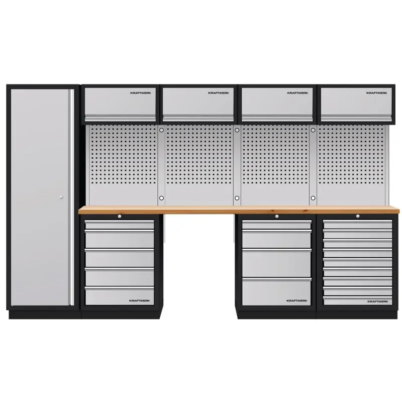 Mobilier d’atelier 5 éléments + panneaux perforés + 4 meubles hauts combi-standard MOBILIO – KRAFTWERK 3964K-H5049-K4