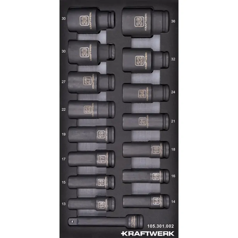 Module de douilles à chocs longues 1/2″, BASIC LINE, 16 pièces, 40×20 – KRAFTWERK 105.301.002