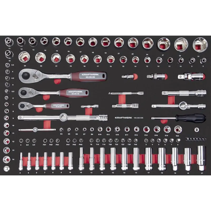 Module jeu de douilles PRO LINE EVA – 1/4″ + 3/8″ + 1/2″ – 125 pièces, 60×40 – KRAFTWERK