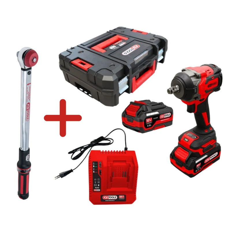 En savoir plus – Pack de Serrage Roue KS Tools – Clé Dynamométrique 40-200 Nm + Clé à Chocs Brushless 850 Nm